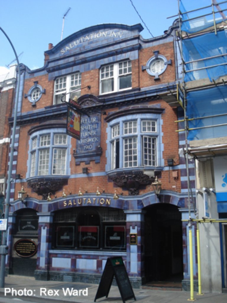The Salutation featured on the Daytime Crawl of Hammersmith, Barnes and Putney in October 2003, the Evening Crawl of Hammersmith in July 2006, and the Billing and Cooing: Daytime Crawl of Earls Court, West Brompton, Fulham and Hammersmith in October 2013.